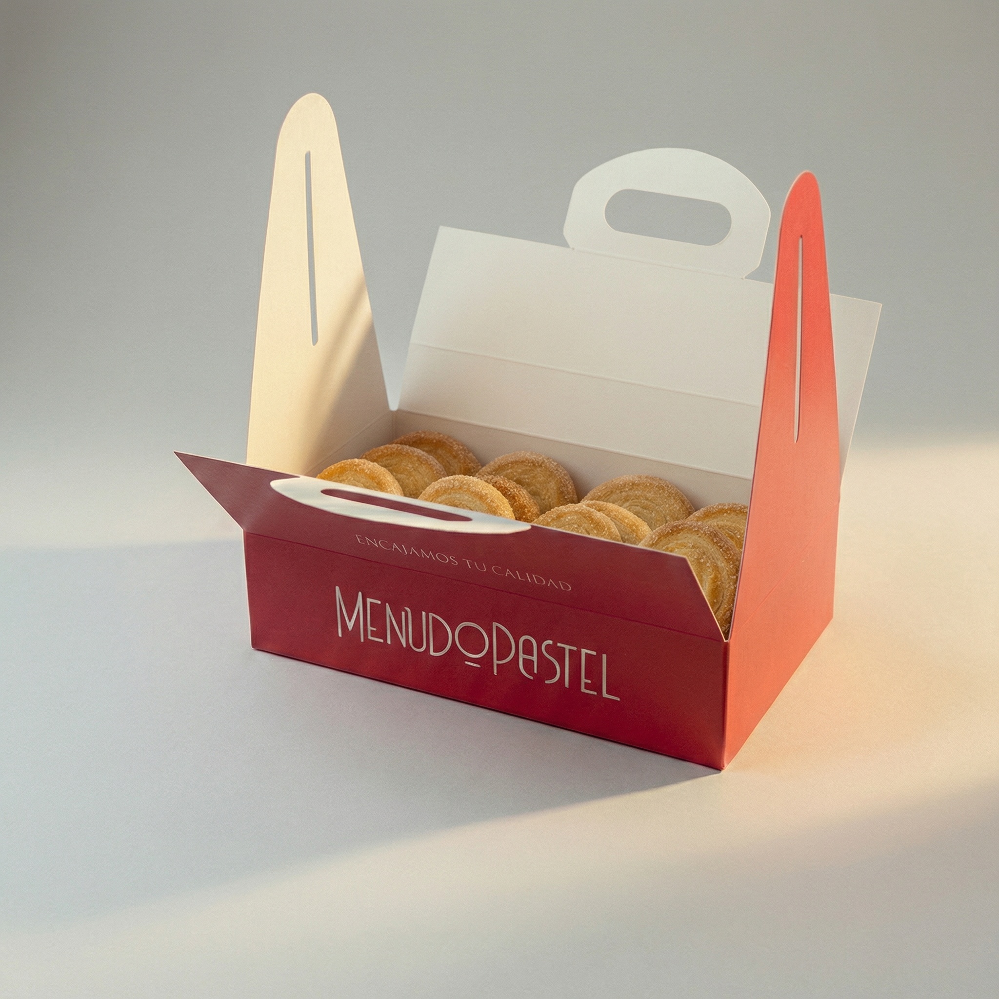 Caja para pastas, pasteles…con asas.